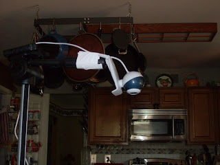 There's the basic setup. This one both works better, and was easier to make than the last. Now I can adjust the height and have better access to the camera's focus ring.